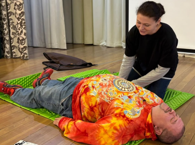 Занятия провёл член Российского сообщества первой помощи, заместитель председателя Центрального совета ВДЮОД "Школа безопасности", инструктор-методист детско-юношеского общественного движения Сергей Тетюхин.
