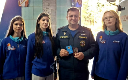 Юные спасатели вручили Евгению Петровичу памятную медаль - 30 лет Всероссийскому детско-юношескому движению «Школа безопасности»