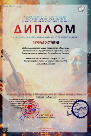 Также ребята заняли 2-е место в Международном фестивале-конкурсе искусств "Новые таланты".