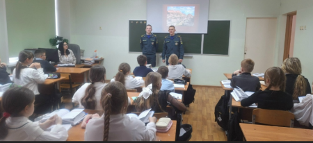 Выпускники "Школы безопасности " Главацкий Никита и Васильев Егор пришли в родную школу и рассказали ребятам о своей учебе в Академии ГПС МЧС России