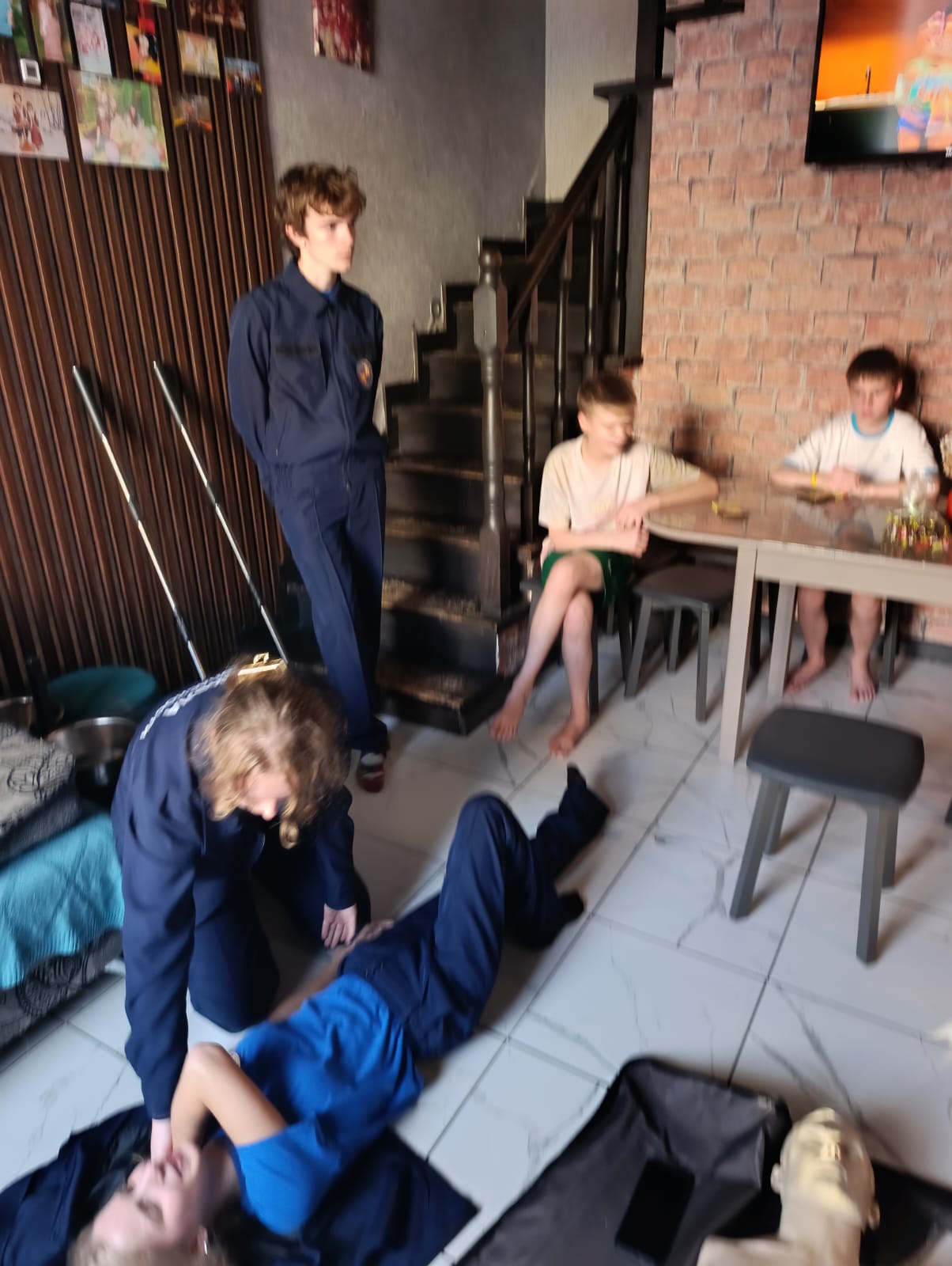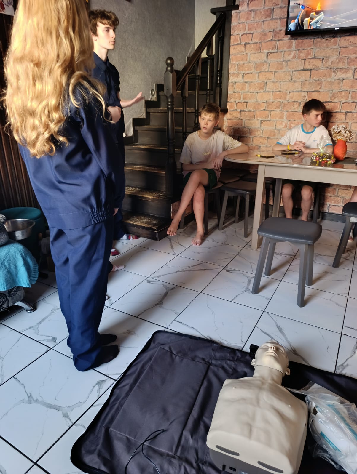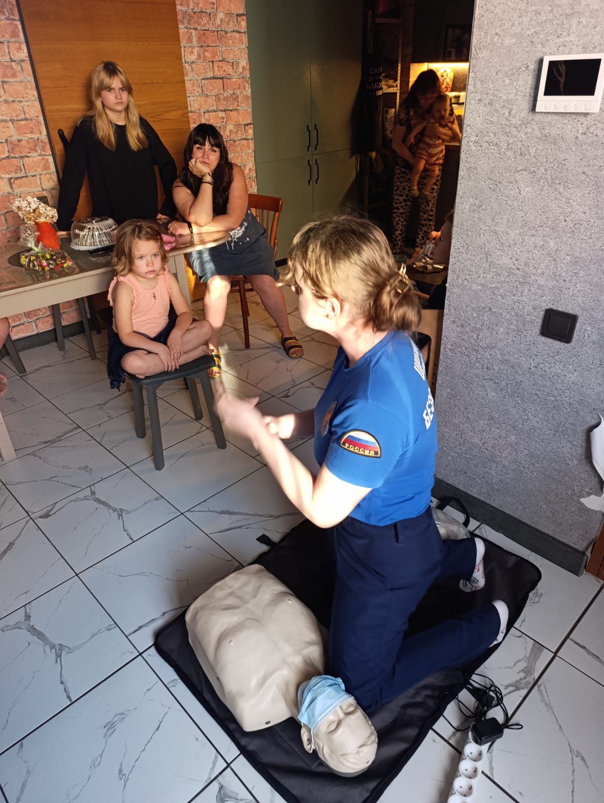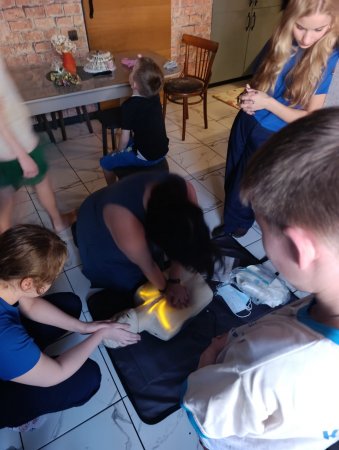 С интересом участвовали все. Самыми юным по четыре и пять лет. Годовалый кроха с любопытством наблюдал как старшие учились оказанию первой помощи.