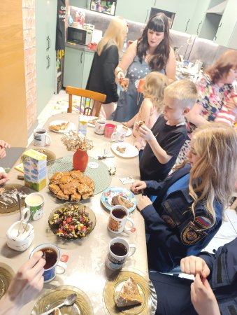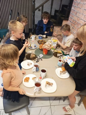 В завершение встречи делились впечатлениями, пили чай и угощались сладостями, которые принесли участники мобильного отряда.
