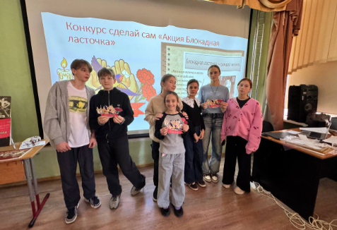 Вот и наши ребята вспомнили эти даты и подтвердили знания основных на периодов периодов блокады Ленинграда, вместе читали и слушали стихи и песни, посвященные Ленинградцам, сами на время стали героями из комсомольских отрядов, которые тушили ЗАБ, заклеивали окна, стали снайперами , слушали 7 симфонию Шостаковича и узнали как великий композитор работал пожарным на крыше консерватории, , вспоминали дорогу жизни и команду Нины Соколовой, которая построила трубопровод, проложила кабель связи по дну Ладожского озера, узнали как все парки Ленинграда были засажены капустой и картошкой , и что семена хранили в подвалах Исаакиевского собора , при таком голоде ни одно зернышко не пропало. Дети узнали о символах Блокады и изготовили ласточку , ведь именно она стала главным символ Блокадного Ленинграда, символом веры, надежды и любви, людей переживших Блокаду. Составляя из буквы главные слова, наши шестиклассники теперь понимают , что если для всего мира Ленинград был символом русской культуры, то для самих ленинградцев и для нас , он стал символом русского духа, несгибаемости и стойкости.