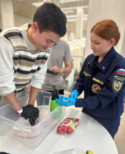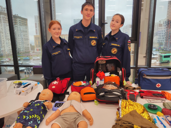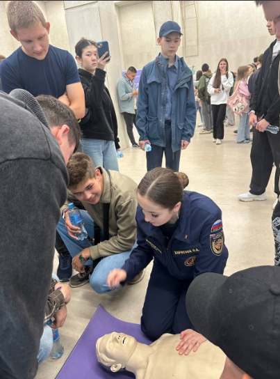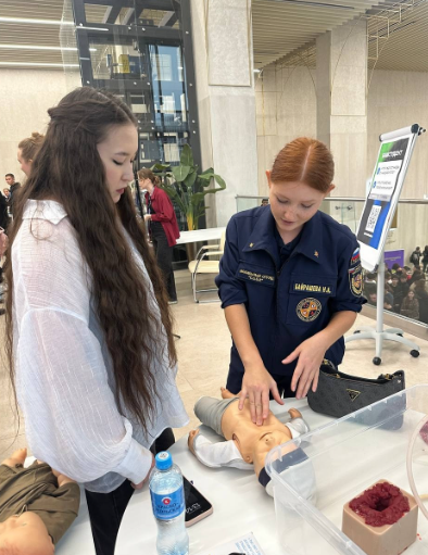 Наша команда подготовила площадку, где студенты смогли отработать навыки оказания первой помощи.