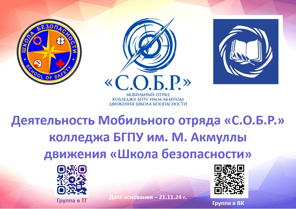Мобильный отряд «С.О.Б.Р.» колледжа БГПУ им. М. Акмуллы Движения «Школа безопасности» участник всероссийского конкурса