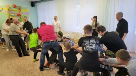 Дедушки, папы и братья проявили свою ловкость и быстроту в прохождении эстафет: "Танкисты", " Попали в мишень", "Переправа ".