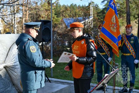 Юные пожарные произнесли торжественную клятву. Начальник управления полковник внутренней службы Владимир Владимирович Дерышев вручил ребятам именные удостоверения и паспорта безопасности школьника, а также буклет с «Напутствие молодым пожарным» от брандмайора Российской империи Эдуарда Эдуардовича Лунда.